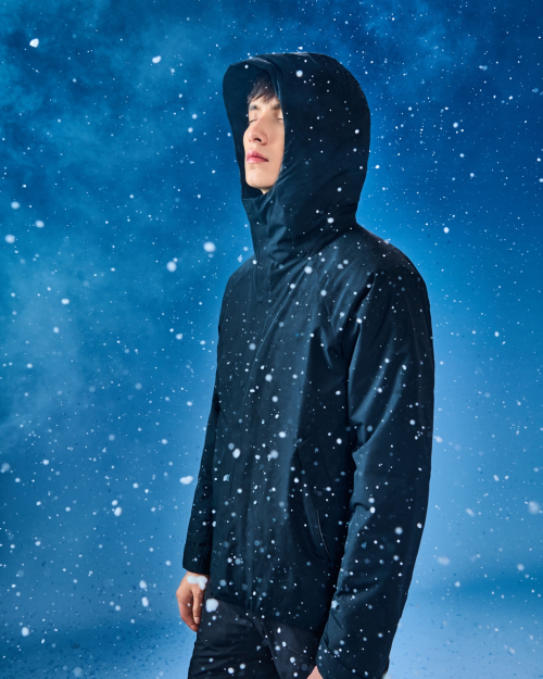 立体剪裁,线条流畅利落,自由伸展不紧绷,能够很好地修饰身形,无论搭什么颜色、风格的衣服都能 hold 住。最让人惊喜的是这款叠加态智能发热抗寒套装还内置柔性温度计,随时掌握身体体温。