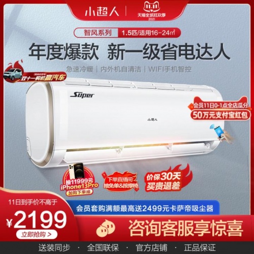 小超人空调1.5匹新一级变频冷暖两用卧室壁挂机35FDD81