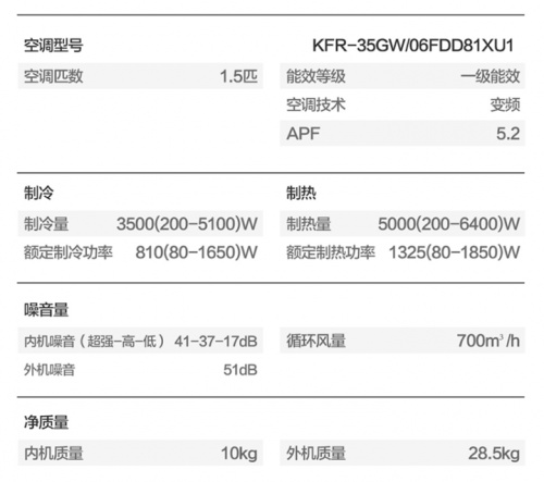 外机配置是保障空调基本能力的基础,而内机则主要完成空调的各种功能。
