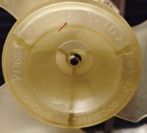 图中可见风扇尺寸是426mm,属于海尔系1.5匹新一级空调常规尺寸。通常,风扇直径越大越好,噪音会小一些。