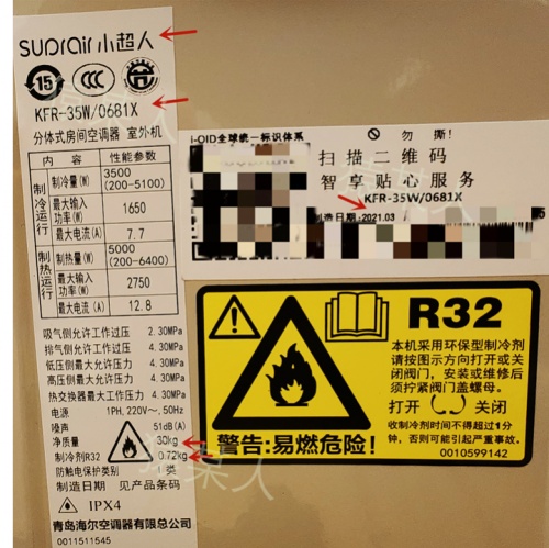 今天拆机的具体型号是:小超人智风 KFR-35GW/06FDD81XU1 1.5匹 新一级空调。