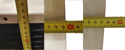 实际测量:550x795(不含阀)x27.5(不包括底角,风扇罩)