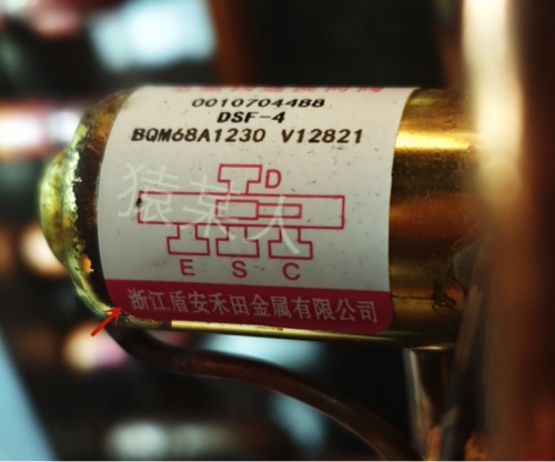 图中可见,本空调使用的是三花电子膨胀阀。三花,盾安都是常见的电子膨胀阀品牌,厂家也经常混用,质量都满足要求。