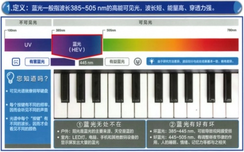 首先需要了解什么是蓝光,其实蓝光一点也不神秘。我们都知道,自然光是由红、橙、黄、绿、蓝等不同颜色的光线所组成的。而不同颜色的光,拥有不同的波长。红橙黄绿色的波长在500~700nm之间。波长为380~500nm的短波光线,即是蓝光。物理学告诉我们,光的波长和光子的能量是成反比的。也就是说,波长越短的光,它的能量就越强。