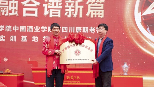 今年的封藏大典特别增添了一项与泸州职业技术学院校企合作实训基地签约暨揭牌仪式。泸州职业技术学院、中国酒业学院刘竟成院长与四川唐朝老窖(集团)有限公司董事长刘本良先生,分别代表学院和企业签订了校企合作协议,并为“泸州职业技术学院产教融合实训基地”授牌。这一刻,标志着唐朝老窖企业发展的新起点。