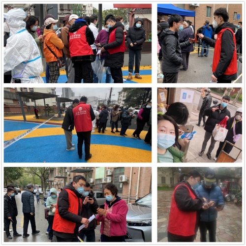 除了采购代买的需求,这家中介的经纪人还秒变“大白”“小蓝”奔赴一线,协助核酸检测、派发居民物资、安抚居民情绪等。尤其是上海近日以来乍暖还寒,气温骤降,即使这样的天气,一个个志愿者们依然顶着风雨完成了一天的服务,用耐心、细心、热心换来居民的安心。
