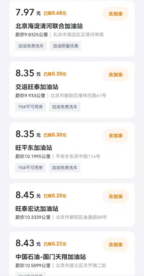 一位北京车主算了一笔经济账,“我在嘀嗒上预约的92#价格是7.97元,比市面上降了0.68元,相当于加满一箱油节省了34块钱左右,也算是跑赢大盘了。”