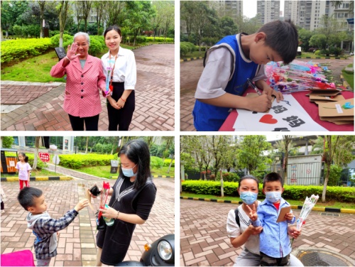 小编发现细心的物业人员不单为妈妈们准备鲜花,还为小朋友们准备了卡片,让他们把想对妈妈说的话写下来送给妈妈。一群小朋友在物业客服姐姐的帮助下,在卡片写下了自己最想跟妈妈说的话:“妈妈我爱你”、“妈妈,母亲节快乐”、“妈妈我今天一定不会惹你生气”......一个个稚嫩的字,犹如一个个跳动的音符,拨动着妈妈们的心。一个收到卡片的妈妈说:“收到我家捣蛋鬼送的卡片,真的非常开心和惊喜,感谢物业工作人员为我们精心准备的母亲节祝福,他们是一群传递爱和正能量的使者”。