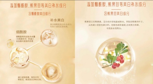 添加了烟酰胺+熊果苷,这两种明星美白成分都可以深入肌肤,加快黑色素角质脱落,有效减少皮肤上已生成、沉积的黑色素,亮白肌肤。除此之外,它们还具有维持肌肤含水量、促进真皮层微循环的作用,能很好地呵护肌肤健康。