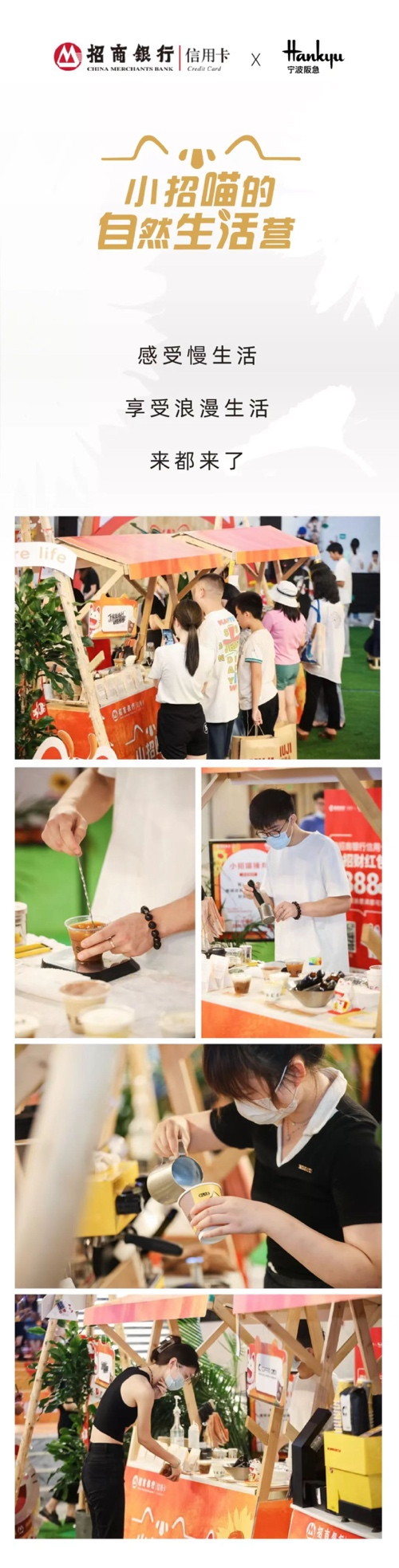 这个六月,宁波阪急 X 招商银行的玩咖市集引领夏日新风尚,将露营的野趣融入城市的诗意栖居。在日常的繁忙与疲惫之后,不妨来宁波阪急,在花式咖啡的丰富层次中感受一场身与心的自然之旅。