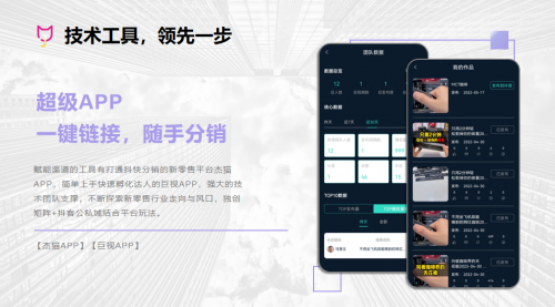 除此之外,J-MALL杰猫也将通过独家工具“巨视APP”的优质生态内容进一步布局双平台多级别矩阵。致力于精准赋能,掌握流量秘钥,塑造市场辨识度,打造流量闭环。随之将与“抖客”官方机构合作打通J-MALL杰猫商城与抖音平台之间的壁垒,时刻紧跟互联网流量热点,实现双域流量循环叠加,打造短视频赛道电商超级矩阵,以链通双平台用户、达人、明星、商品,让“星直播”成为“星零售”商品和服务的全新舞台,为广大消费者带来更优质的商品和购物体验。