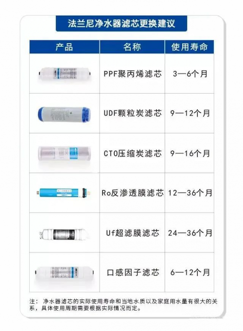 下面是滤芯更换建议参考图,建议收藏对照使用!