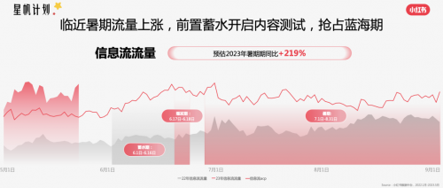 根据小红书站内流量趋势洞察,不同节点教育行业流量上涨明显。*从22年数据来看,比如针对暑期报班节点,6月中下旬进入蓄水期,6月底进入爆发期,流量同比增长70%。企业需要提前进行节点的投放测试,以免错失优质流量。