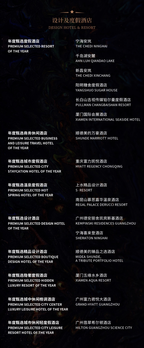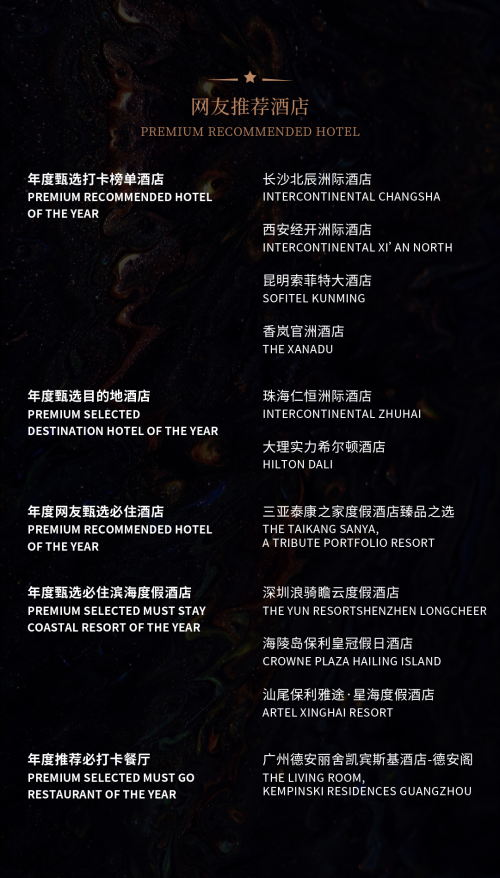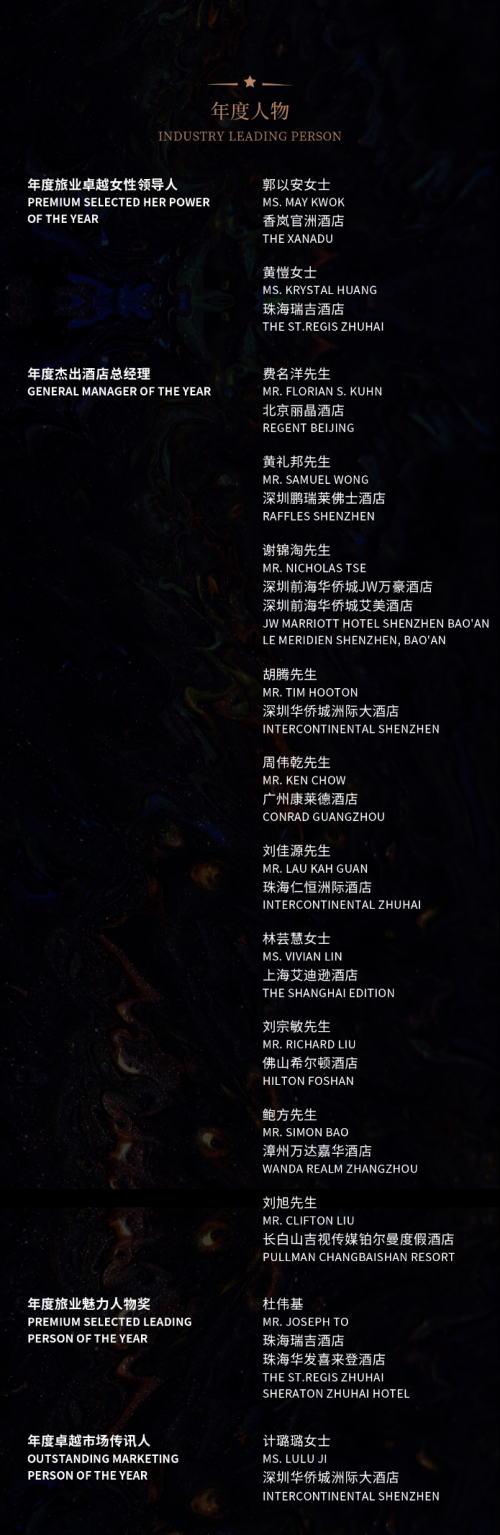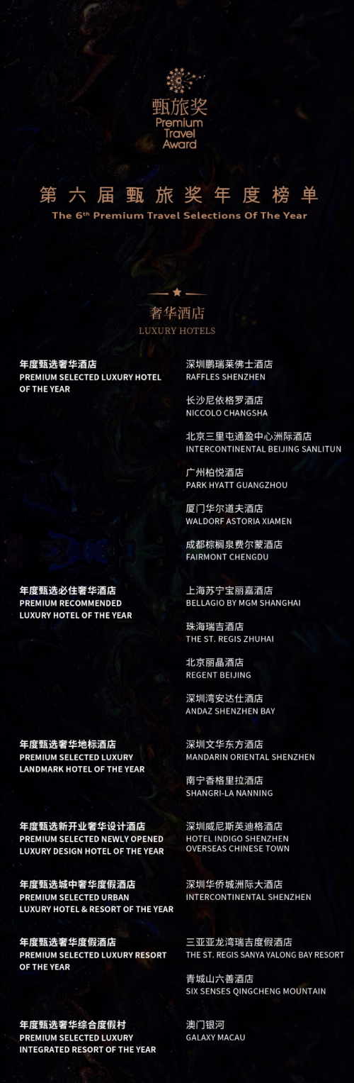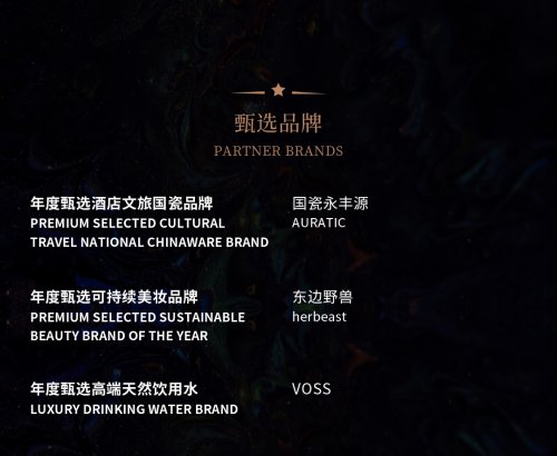 本次盛会特别鸣谢东边野兽、国瓷永丰源、DU COFFEE 、VOSS 、帝亚吉欧等品牌的大力支持。甄旅奖将继续立足酒店聚焦文旅,拓宽行业边界,聚拢行业精英,探索消费转型升级带来的挑战并寻求有效的突破点,为文旅业的发展提供持久动力。