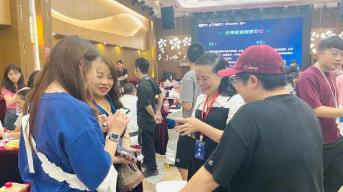 接下来就是全场所有采购商和供应商最期待的配对环节,现场供采双方的总经理都积极参与,在现场工作人员的指导下有序轮换交流,热情互动。这是一次创新的尝试,相信这次的配对环节,不仅能加深双方的情感,还能真正实现双方有效的业务对接。