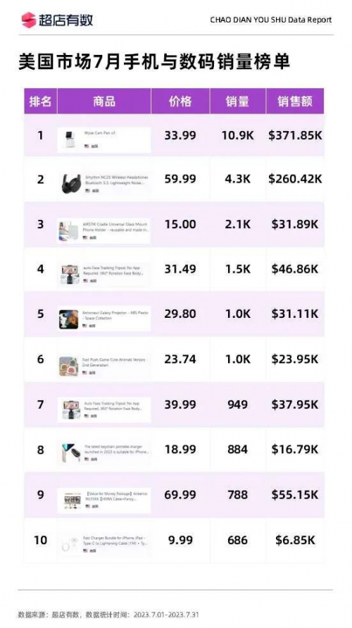 具体是哪一款商品最爆?销量最高?完全可以提前参考!超店有数整理出7月美国市场四大热销类目美妆个护、女装与女士内衣、爱好与收藏、手机与数码四大品类商品销量排行榜供大家参考: