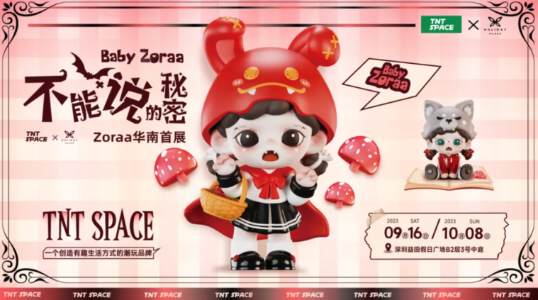 10月3日11:00,Zoraa二代盲盒首发 500套(只以端盒形式售卖);10月4日11:00,“Baby Zoraa × Lancôme x 益田假日广场”联名限定礼盒限量发售现场200套(每人限购一套,先到先得,售完即止);扫码关注Zoraa小红书号,编辑指定内容并打卡,发布后即可现场领取礼品;益田新会员首次消费积分即赠好礼一份。