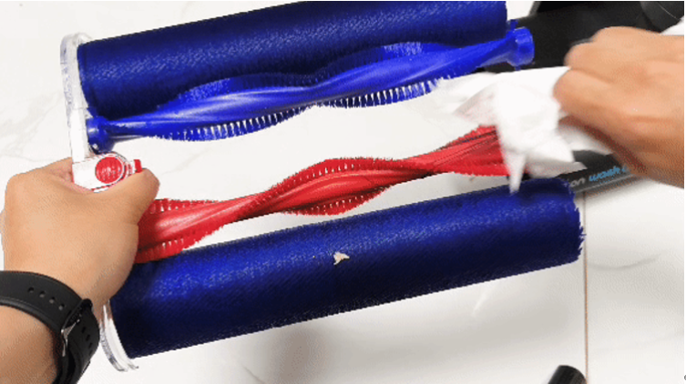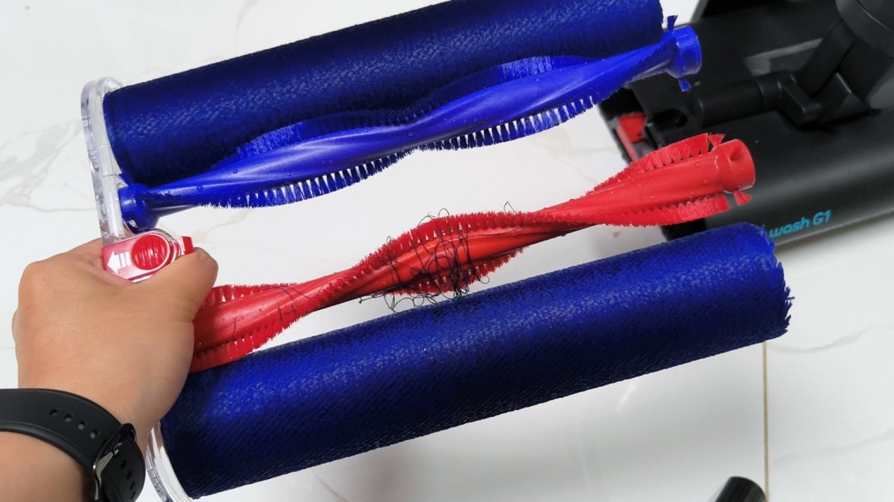 在解决毛发缠绕问题上,戴森不仅在吸尘器领域有着丰富经验,WashG1同样也表现不俗。实际测试发现,无论是线团还是毛发,清洗过后它并不会直接缠绕在主刷上,而是被尼龙刷刷下并“困住”,后续只需要用纸巾捋一下就能清除。这对于家中养宠物的人群更加友好,不用担心主子的掉毛问题影响主滚筒的清洁效果。