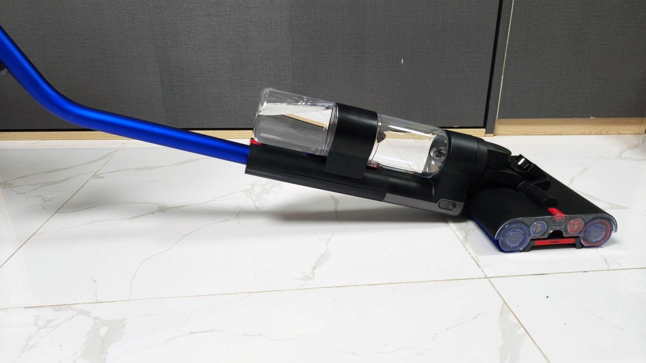 另外,戴森WashG1采用较低的头部高度设计,加上合适的水箱大小和灵活的接口设计,让用户更容易放倒推杆。传统洗地机倾斜角度最低在30°左右,而戴森WashG1能够倾斜至8°,主杆几乎可以完全放平,用户清理一些柜子和床的下方会更加方便。