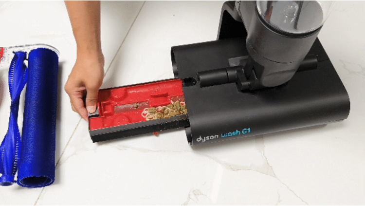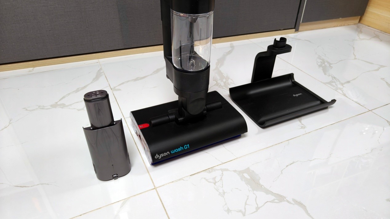 当然有利也有弊,对应的就是这次戴森WashG1并没有配备烘干功能。在省去长时间烘干这个环节,完成自清洁后,用户需要将主刷取出,单独放置以便自然晾干。当然,戴森WashG1自清洁之后,主滚筒其实并不是很湿,且加入戴森的清洁剂后,可实现99.9%的除菌率。不过为了健康考虑,还是建议用户取出晾晒彻底后再使用。