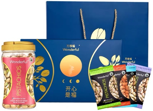 在感恩节的幸福时刻,大家与亲友欢聚一堂,用充满心意的礼物和卡片表达感激和爱意。无论是家人相伴畅聊,还是好友聚会玩闹,美味可口的万多福开心果始终陪伴消费者共庆每一个节日相聚时刻。深耕中国市场多年的万多福开心果充分了解中国消费者的口味偏好,为感恩节赠礼提供多样的产品选择,满足消费者为家人好友送去健康和开心的需求。万多福全新推出的开心是福600克礼盒,不仅外观高档精致,散发着浓厚的节日氛围,且口味丰富,选择多样。礼盒内含400克盐焗味开心果一罐,50克盐焗味、无盐味、黑椒蒜香味开心果和50克盐焗味巴旦木各一袋。开心是福600克礼盒适宜在欢聚时与亲朋好友一同分享,共赏美味与开心氛围。万多福开心果亦希望陪伴大家度过每一个温馨时刻,向大家传递开心与健康。